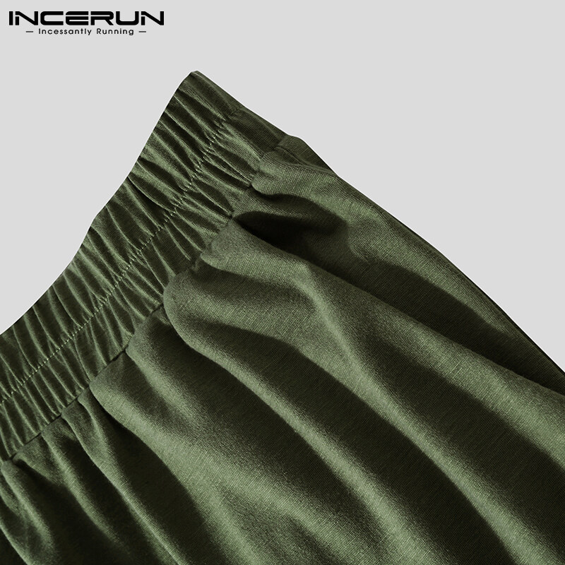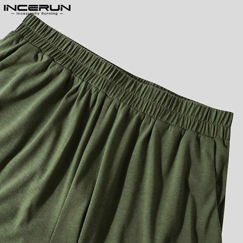 Beehoo INCERUN男式短袖软睡衣T恤短裤套装睡衣套装休闲套装