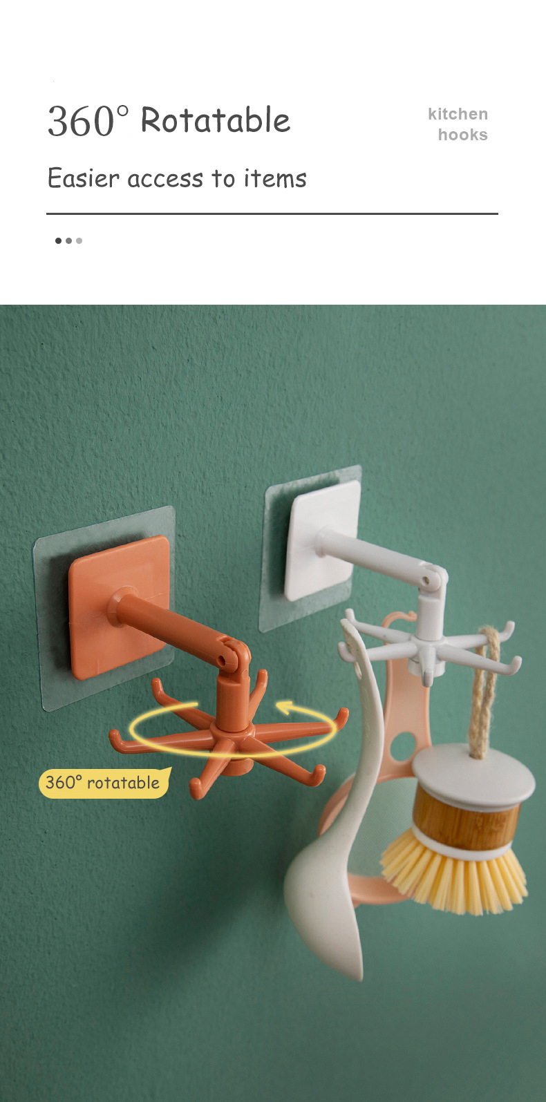 Homy 360°可旋转6钩衣架厨房小钩壁挂式挂钩自吸式厨房浴室挂钩架可调节多功能厨房挂钩